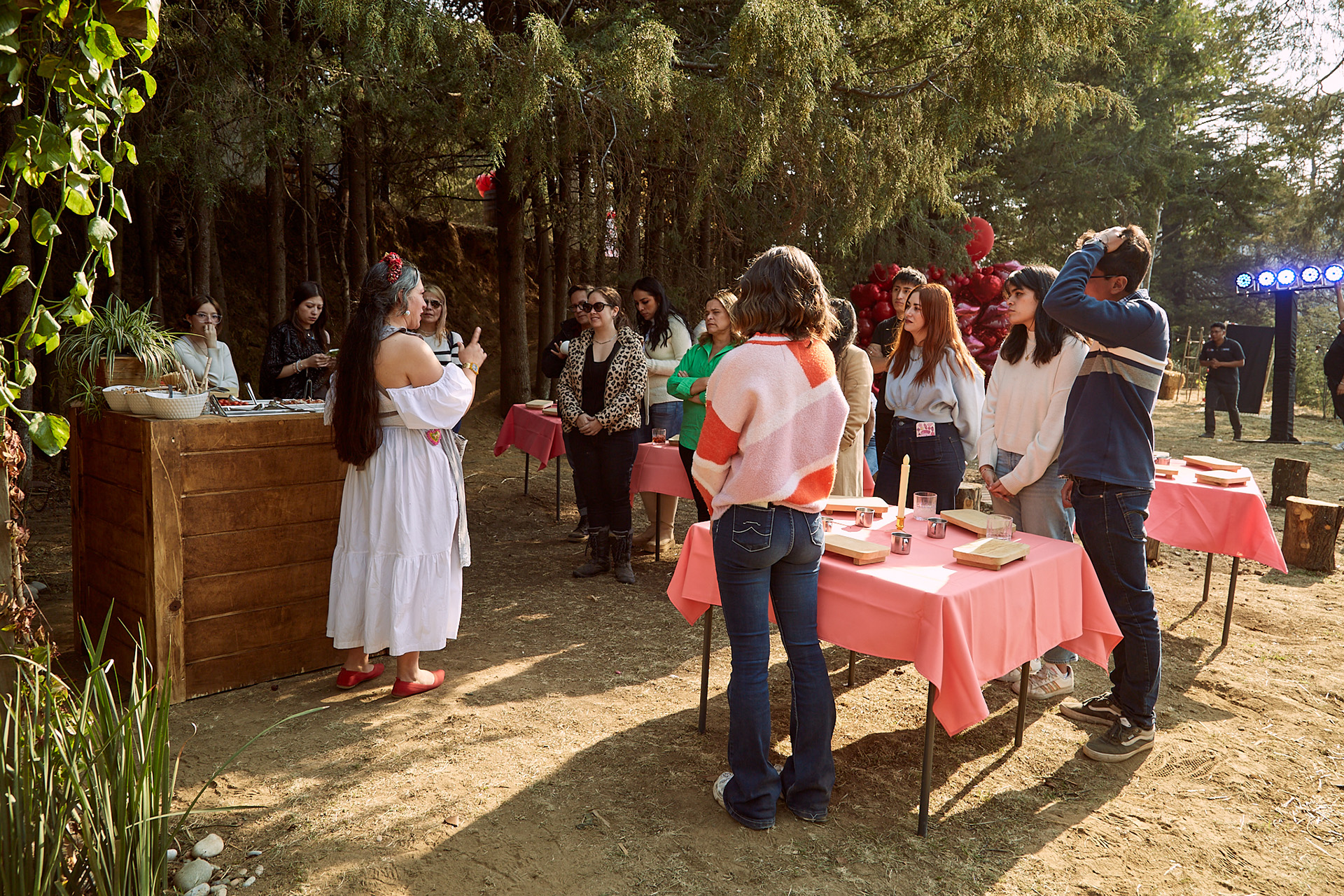 Cada experiencia se transforma en una atmósfera cuidadosamente curada. Diseñamos la ambientación con elementos sensoriales, estéticos y simbólicos que responden al tipo de experiencia y al mensaje del evento. Incorporamos: