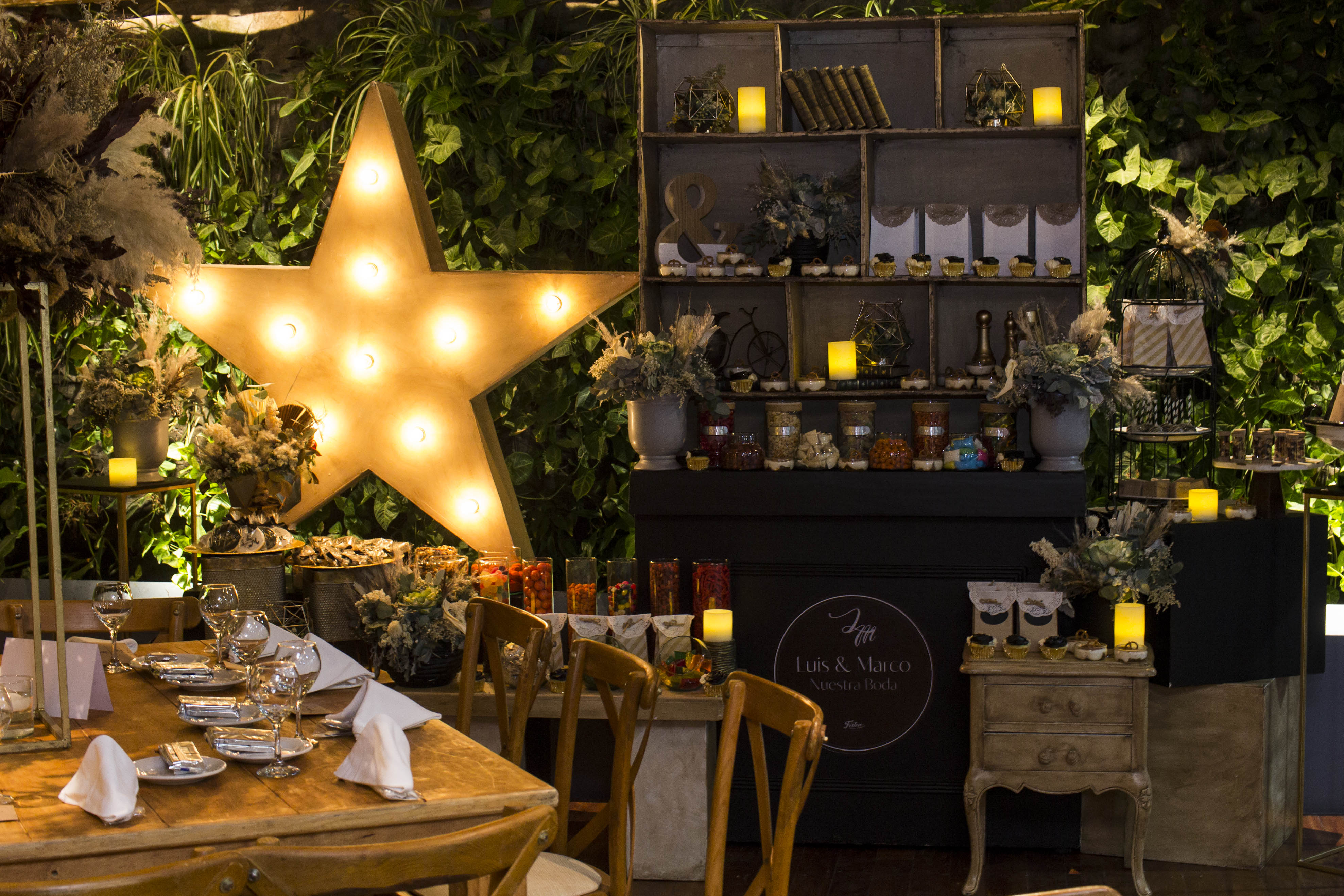 Cada boda es única, y así lo reflejamos en su ambientación. Diseñamos decoraciones personalizadas que integran flores, mobiliario, iluminación, textiles y detalles artísticos, alineados con la paleta de colores y la temática elegida. Creamos atmósferas visuales y armoniosas que realzan la ceremonia, recepción y todos los momentos especiales.
